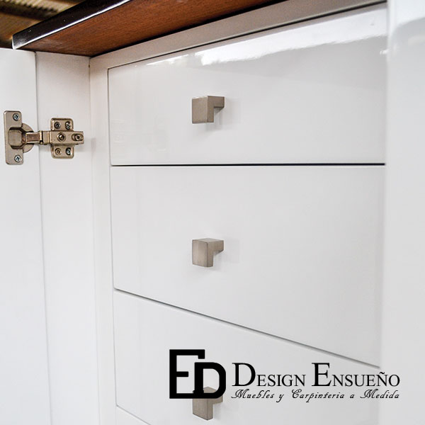 Tablero: Acabado en barniz poliuretano alto brillo. Opciones: Nogal, Valdez, Ebano Negro.